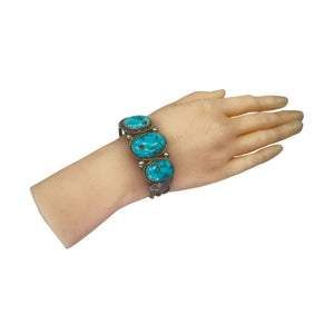 Native American Navajo Sterling Silver & Turquoise Squash Blossom Necklace