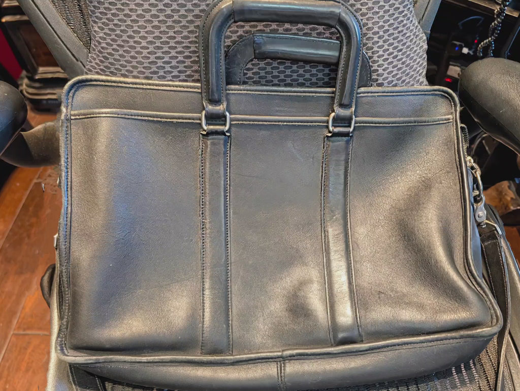 Designer: Coach Material: Glove-tanned leather Origin: United States Circa: 1990-1999 Measurements: 17"W x 11"H x 3"D Handle Drop: 3" Strap Length: 46” Interior Lining: Leather; Fine textile Opening/Closure: Zipper Hardware: Silver-tone Hardware: Strap and Entrupy Certificate Condition: Very Good pre-loved vintage condition; exterior leather recently revived (polished/conditioned), interior and strap left untouched (see photos for details).