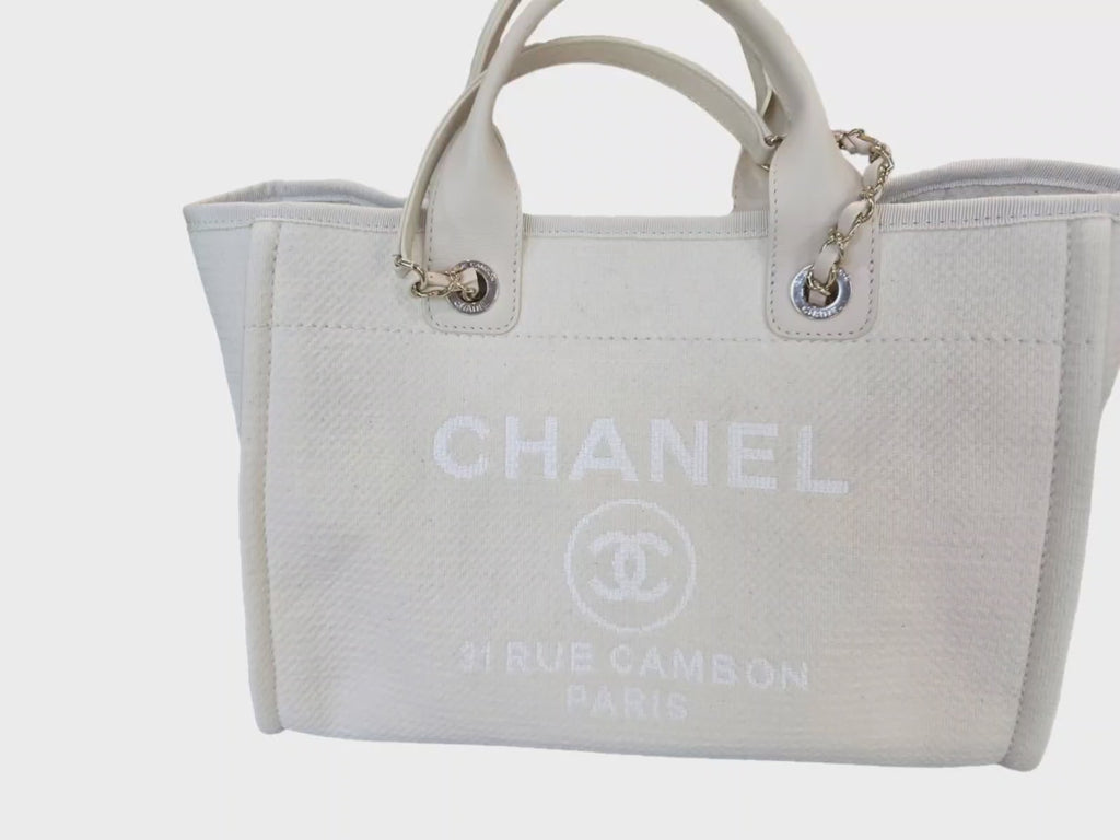 Chanel Mixed Fibers Calfskin White Small Deauville Shopping Tote