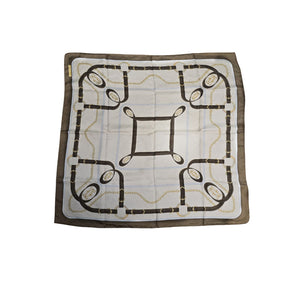Indulge in luxury with the Cartier Must De Cartier Silk Equestrian Scarf. Featuring a sophisticated design in brown, cream, and gold with rolled edges, this 100% silk scarf from designer Cartier exudes elegance and exclusivity. Add a touch of history to your wardrobe.