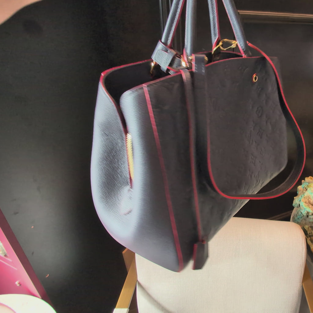 Louis Vuitton Blue Monogram Empreinte Leather Montaigne MM Top Handle Bag - TheRelux.com