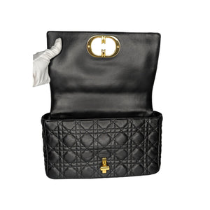 Christian Dior Black Supple Cannage Calfskin Caro Large Bag