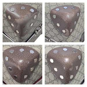 Designer: Gucci Material: Beige and ebony GG Supreme canvas; Brown leather trim Serial Code: 533620 Origin: England Production Year: 2018 Measurements: 18.50”W x 27.75”H x 10.25”D Handle Drop: 1.50” Telescoping Handle Drop: 12” Closure/Opening: Locking Latch Interior Lining: Red cotton linen Hardware: Silver-tone Includes: Keys, Entrupy C.O.A. Overall Condition: Very Good Pre-Loved Condition; Light-moderate wear throughout exterior, including scuffs to corners and edges. Light discoloration to interior and straps (see photos for details).