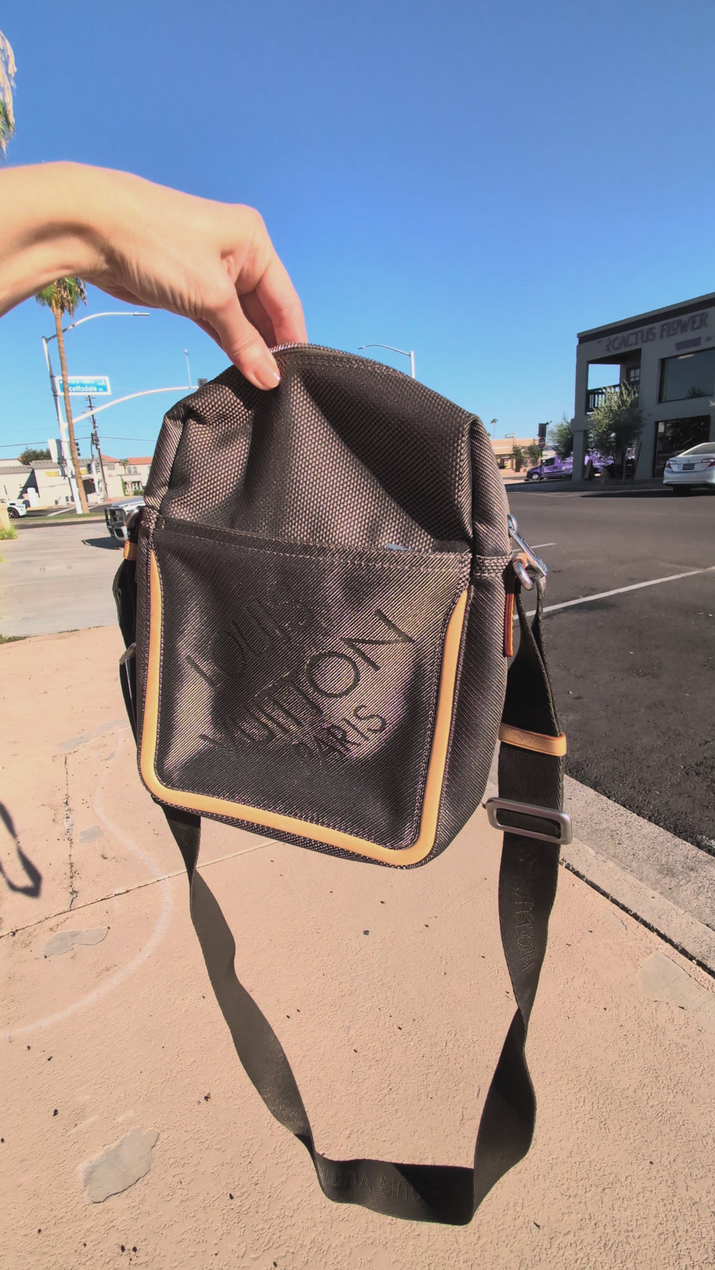 Designer: Louis Vuitton Material: Canvas; Textile Interior Date/Authenticity Code: SP0045 Production Date: April 2005 Origin: France Measurements: 10.25" x 8" x 3" Drop: Max 21" - adjustable strap Interior Lining: Textile Hardware: Silver-tone Hardware Opening/Closure: Top Zipper Pockets: 2 inside patch pockets (1 LG., 1 SM.) Overall Condition: Very Good Pre-owned Condition; Very Well Maintained