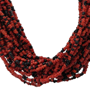 Native American Coral & Jet Multi-Strand Bead Necklace
