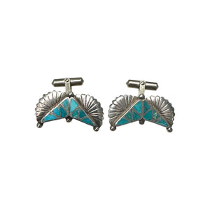 Native American Zuni Turquoise Inlay & Sterling Silver Wing Cufflinks
